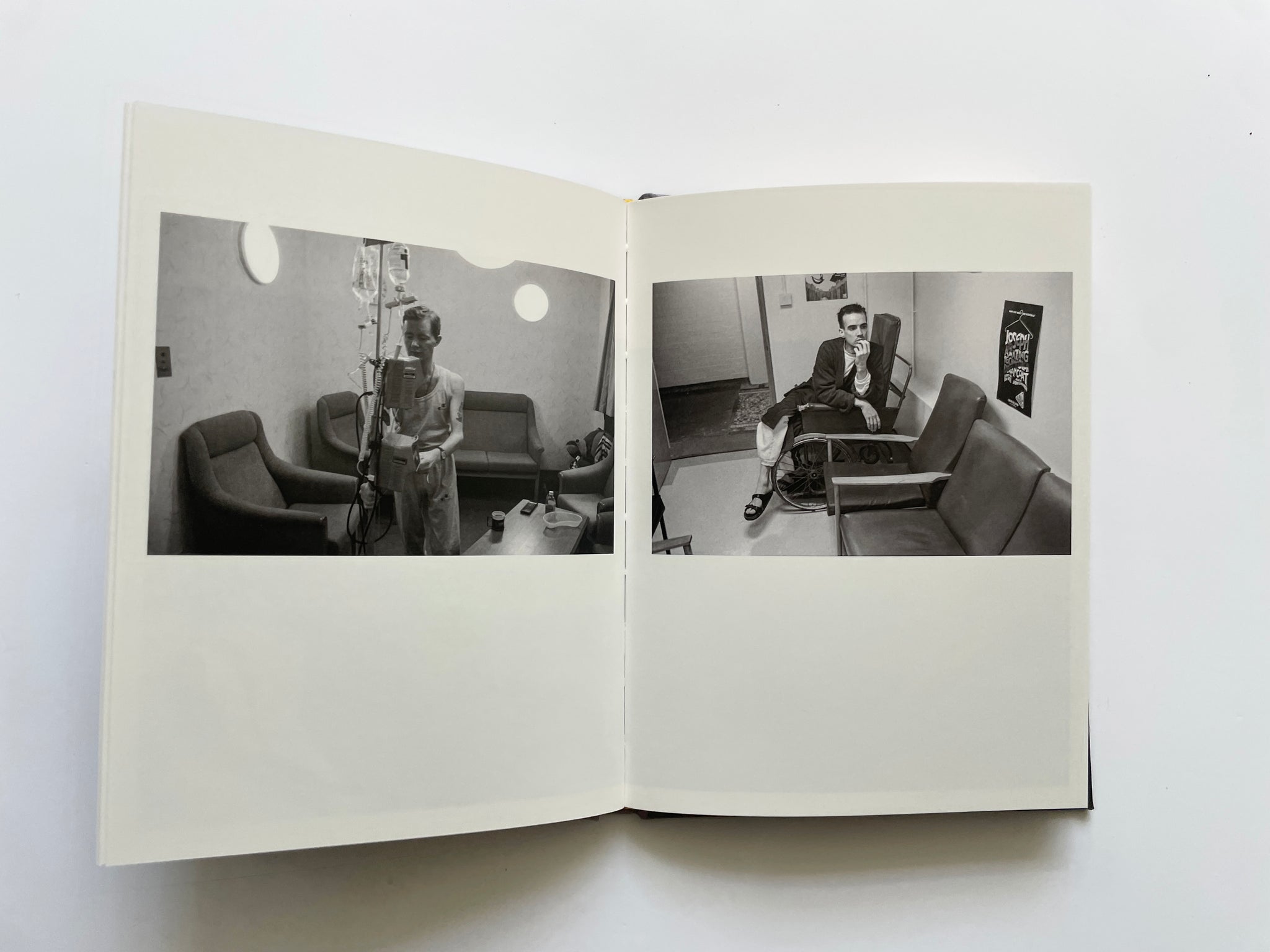 In 1993, Gideon Mendel spent a number of weeks photographing the Broderip and Charles Bell wards in London’s Middlesex Hospital as part of the ‘Positive Lives’ project. The Broderip was the first AIDS ward in London and was opened by Diana, Princess of Wales in 1987, the first edition of the book's publication date in 2017 marking the 30th anniversary of its opening. This was the era before antiretroviral medications had become available, a very distinct and tragic time. All of the patients on the wards, many of whom were young, gay men, were having to face the terrifying prospect of an early and painful death. In particular Gideon Mendel followed while he was there the stories of four patients - John, Steven, Ian and Andre.